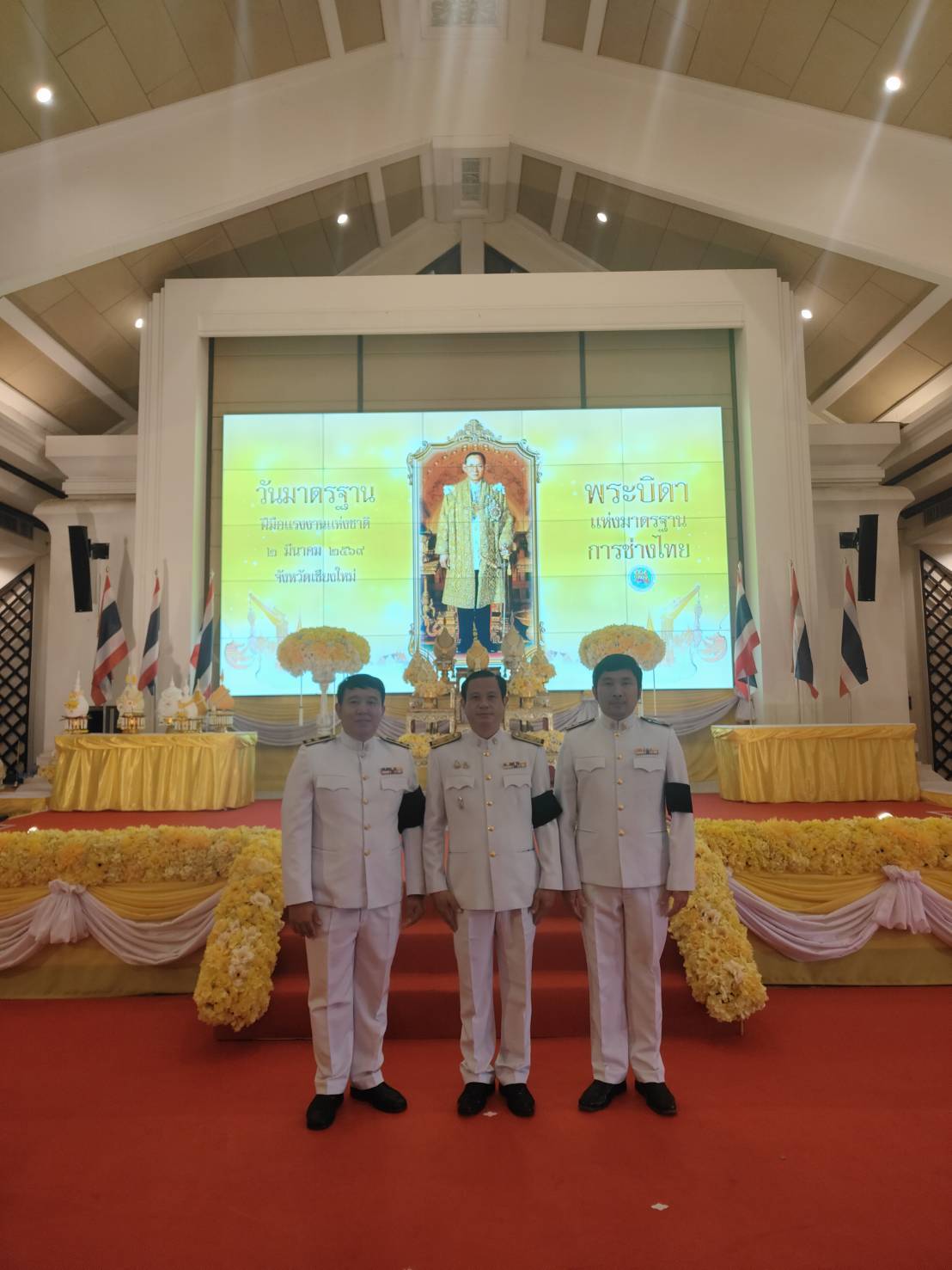 วันจันทร์ ที่ 2 มีนาคม 2569 นายชัชวาลย์ มูลศรี ผู้อำนวยการวิทยาลัยการอาชีพจอมทอง มอบหมายให้นายสิทธิกร ปัญญามา รองผู้อำนวยการฝ่ายวิชาการ พร้อมด้วย นายประเสริฐ จิตสุข ครูสาขาวิชาช่างไฟฟ้ากำลัง และนายวัฒนวงศ์ จันละ ครูสาขาวิชาเทคโนโลยีธุรกิจดิจิทัล เข้าร่วมพิธีถวายสักการะแด่พระบาทสมเด็จพระบรมชนกาธิเบศร มหาภูมิพลอดุลยเดช บรมนาถบพิตร "พระบิดาแห่งมาตรฐานการช่างไทย" เนื่องในวันมาตรฐานฝีมือแรงงานแห่งชาติ ประจำปี 2569 ณ หอประชุมเฉลิมพระเกียรติ 80 พรรษา องค์การบริหารส่วนจังหวัดเชียงใหม่