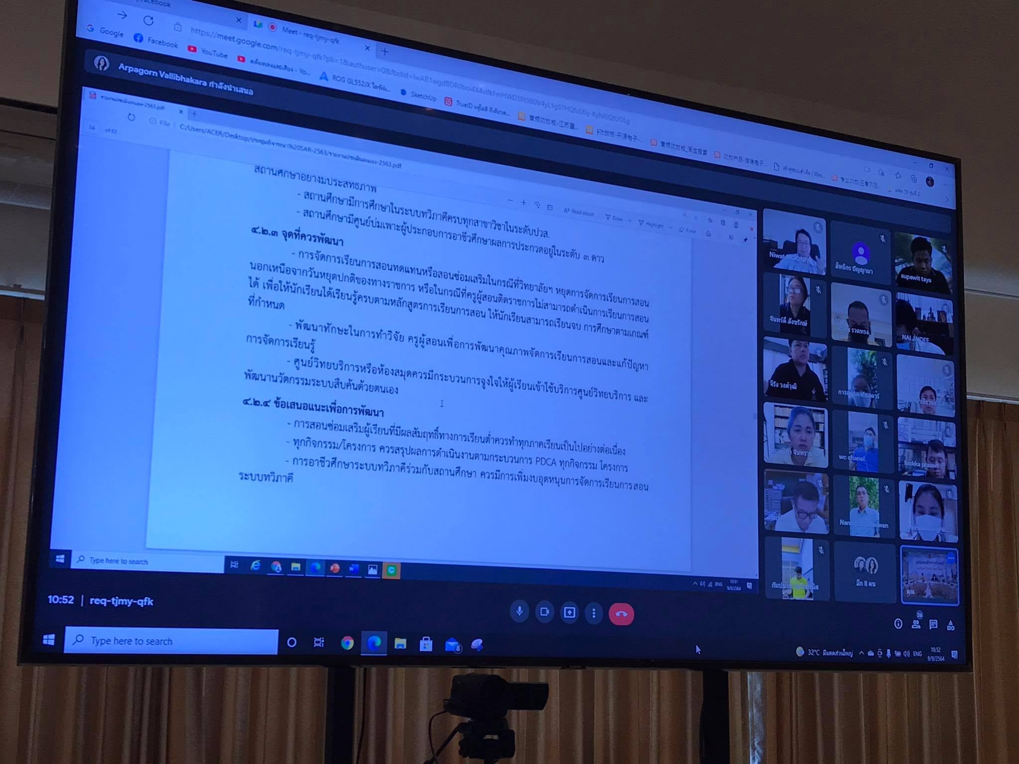 วันที่ 9 สิงหาคม 2564 วิทยาลัยการอาชีพจอมทอง จัดการประชุมคณะกรรมการวิทยาลัยการอาชีพจอมทอง และคณะกรรมการบริหารสถานศึกษา เรื่อง ขอความเห็นชอบรายงานการประเมินตนเอง (SAR) ประจำปีการศึกษา 2563 โดยมีนางอรัญญา กิมภิระ ผู้อำนวยการวิทยาลัยการอาชีพจอมทอง กล่าวเปิดประชุมและมอบหมายให้นางสาวกัญญา ทาระนัด รองผู้อำนวยการฝ่ายแผนงานและความร่วมมือ นำเสนอรายงานการประเมินตนเอง (SAR) ประจำปีการศึกษา 2563 เพื่อให้ที่ประชุมพิจารณา ผ่านระบบออนไลน์โดยใช้โปรแกรม Google Meet